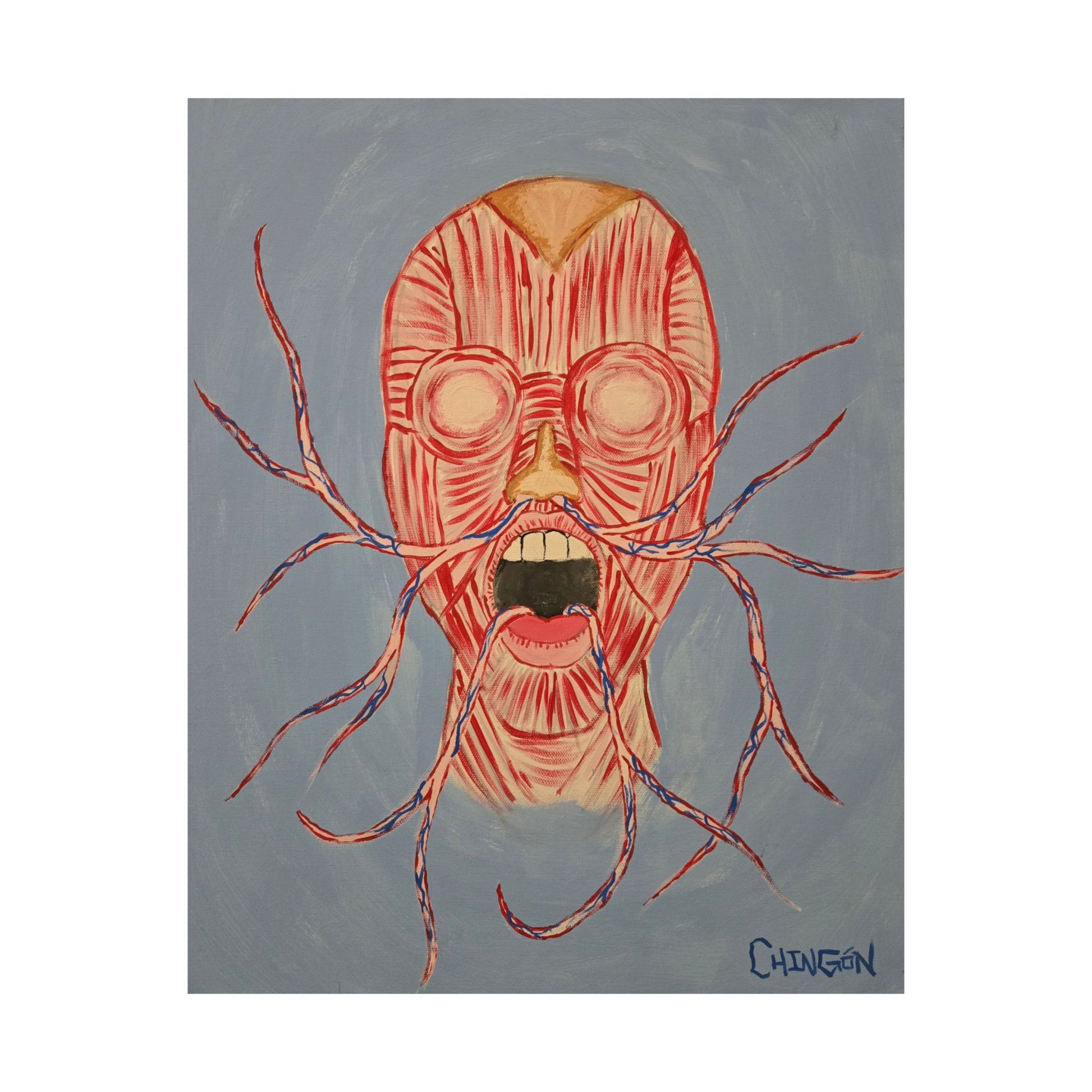 This matte 16x20 vertical poster brings a raw, visceral energy into an indoor space. Printed on museum-grade archival paper using giclée techniques, the intense colors hold up to regular light exposure while the matte finish absorbs glare and highlights fine brush textures. The artwork—an anatomical, otherworldly face with branching tendrils—creates a tense, atmospheric focal point that suits collectors of macabre, surreal, or anatomical art. Available in 46 sizes, it’s crafted for long-term display and careful curation. Slight size variances may occur due to production tolerances.